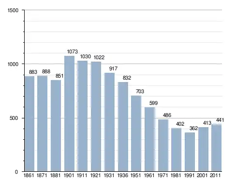 في سنة 1861 بلغ عدد السكان 883 نسمة، وتطور العدد ليصل في سنة 2011 لـ 441 نسمة.