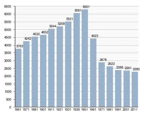 في سنة 1861 بلغ عدد السكان 3٬763 نسمة، وتطور العدد ليصل في سنة 2011 لـ 2٬280 نسمة.