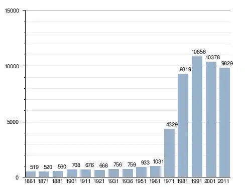 في سنة 1861 بلغ عدد السكان 519 نسمة، وتطور العدد ليصل في سنة 2011 لـ 9٬829 نسمة.