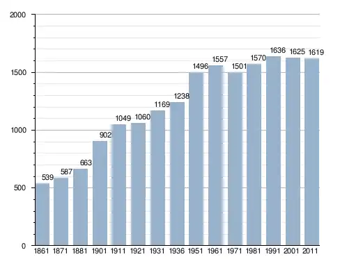 في سنة 1861 بلغ عدد السكان 539 نسمة، وتطور العدد ليصل في سنة 2011 لـ 1٬619 نسمة.
