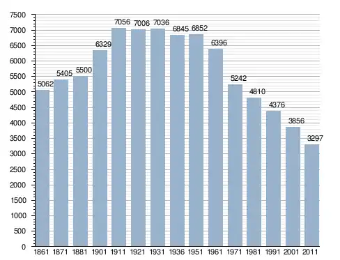 في سنة 1861 بلغ عدد السكان 5٬062 نسمة، وتطور العدد ليصل في سنة 2011 لـ 3٬297 نسمة.