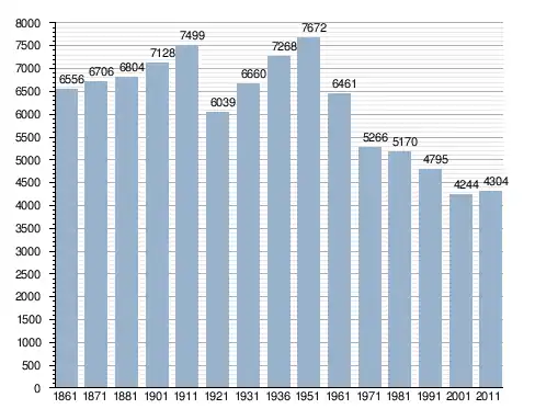 في سنة 1861 بلغ عدد السكان 6٬556 نسمة، وتطور العدد ليصل في سنة 2011 لـ 4٬304 نسمة.
