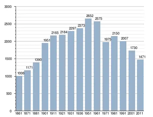 في سنة 1861 بلغ عدد السكان 1٬006 نسمة، وتطور العدد ليصل في سنة 2011 لـ 1٬471 نسمة.
