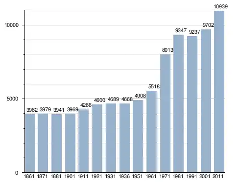 في سنة 1861 بلغ عدد السكان 3٬962 نسمة، وتطور العدد ليصل في سنة 2011 لـ 10٬939 نسمة.