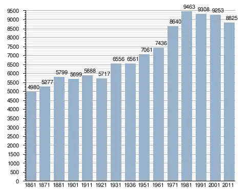 في سنة 1861 بلغ عدد السكان 4٬980 نسمة، وتطور العدد ليصل في سنة 2011 لـ 8٬825 نسمة.