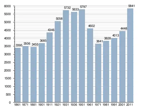 في سنة 1861 بلغ عدد السكان 3٬395 نسمة، وتطور العدد ليصل في سنة 2011 لـ 5٬841 نسمة.