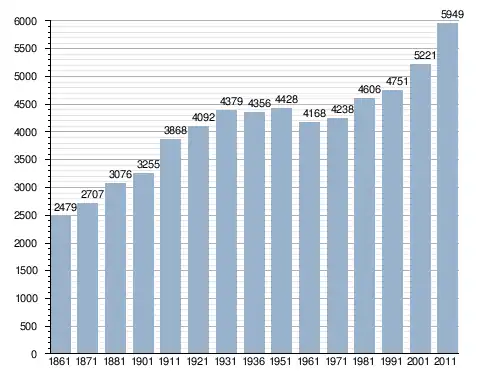 في سنة 1861 بلغ عدد السكان 2٬479 نسمة، وتطور العدد ليصل في سنة 2011 لـ 5٬949 نسمة.
