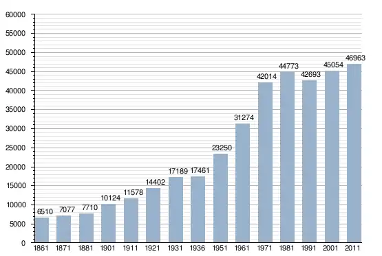 في سنة 1861 بلغ عدد السكان 6٬510 نسمة، وتطور العدد ليصل في سنة 2011 لـ 46٬963 نسمة.