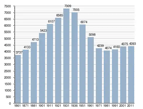 في سنة 1861 بلغ عدد السكان 3٬737 نسمة، وتطور العدد ليصل في سنة 2011 لـ 4٬393 نسمة.