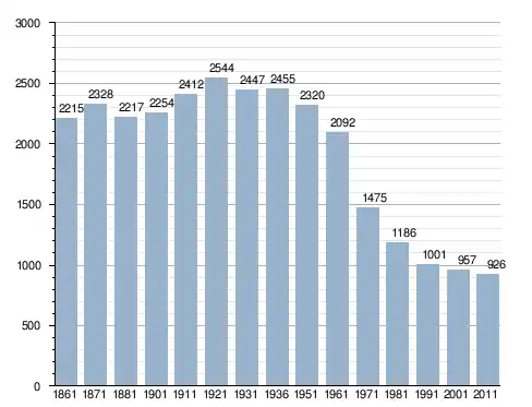 في سنة 1861 بلغ عدد السكان 2٬215 نسمة، وتطور العدد ليصل في سنة 2011 لـ 926 نسمة.