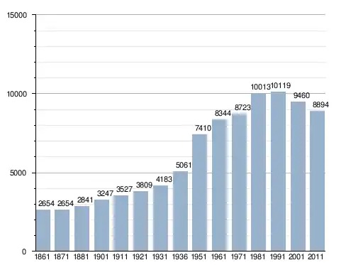 في سنة 1861 بلغ عدد السكان 2٬654 نسمة، وتطور العدد ليصل في سنة 2011 لـ 8٬894 نسمة.