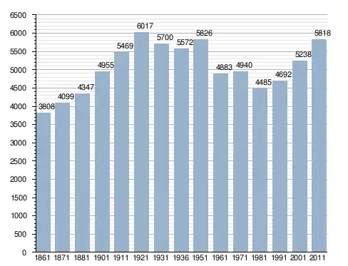 في سنة 1861 بلغ عدد السكان 3٬808 نسمة، وتطور العدد ليصل في سنة 2011 لـ 5٬818 نسمة.