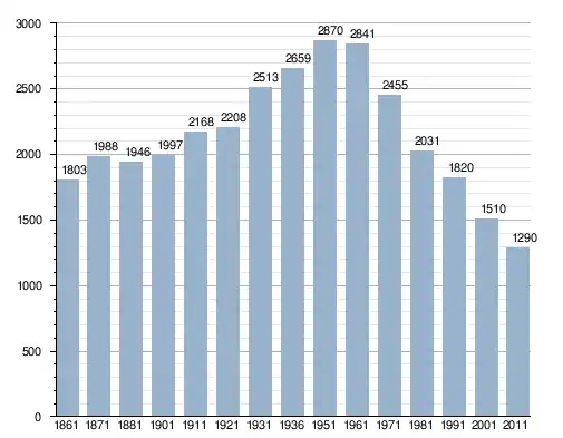 في سنة 1861 بلغ عدد السكان 1٬803 نسمة، وتطور العدد ليصل في سنة 2011 لـ 1٬290 نسمة.