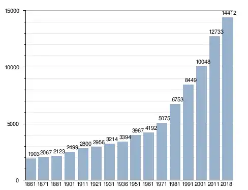 في سنة 1861 بلغ عدد السكان 1٬903 نسمة، وتطور العدد ليصل في سنة 2018 لـ 14٬412 نسمة.