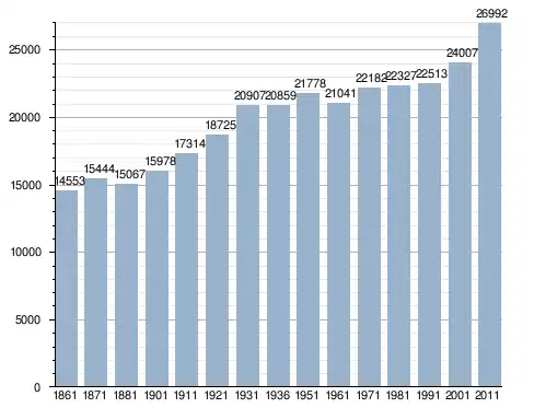 في سنة 1861 بلغ عدد السكان 14٬553 نسمة، وتطور العدد ليصل في سنة 2011 لـ 26٬992 نسمة.