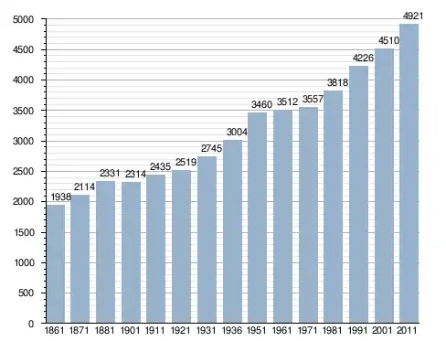 في سنة 1861 بلغ عدد السكان 1٬938 نسمة، وتطور العدد ليصل في سنة 2011 لـ 4٬921 نسمة.
