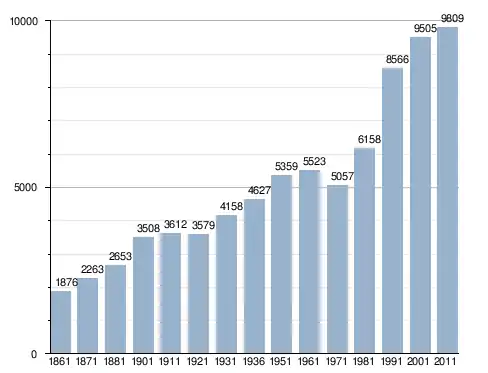 في سنة 1861 بلغ عدد السكان 1٬876 نسمة، وتطور العدد ليصل في سنة 2011 لـ 9٬809 نسمة.