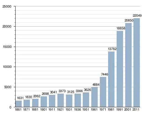 في سنة 1861 بلغ عدد السكان 1٬631 نسمة، وتطور العدد ليصل في سنة 2011 لـ 22٬049 نسمة.