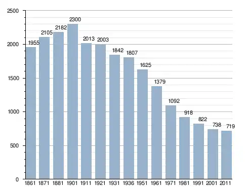 في سنة 1861 بلغ عدد السكان 1٬955 نسمة، وتطور العدد ليصل في سنة 2011 لـ 719 نسمة.
