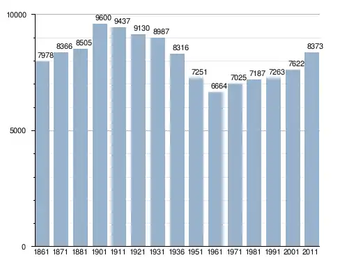 في سنة 1861 بلغ عدد السكان 7٬978 نسمة، وتطور العدد ليصل في سنة 2011 لـ 8٬373 نسمة.