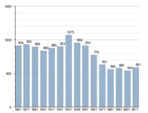 في سنة 1861 بلغ عدد السكان 918 نسمة، وتطور العدد ليصل في سنة 2011 لـ 591 نسمة.
