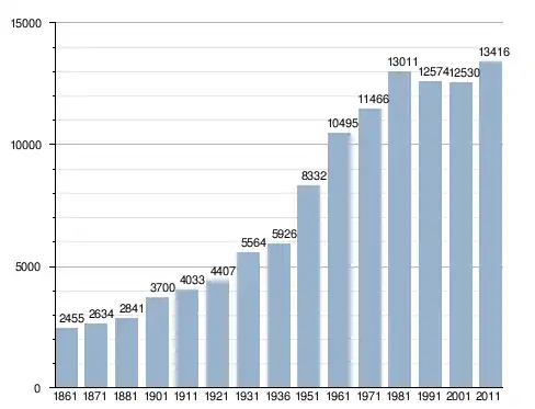 في سنة 1861 بلغ عدد السكان 2٬455 نسمة، وتطور العدد ليصل في سنة 2011 لـ 13٬416 نسمة.