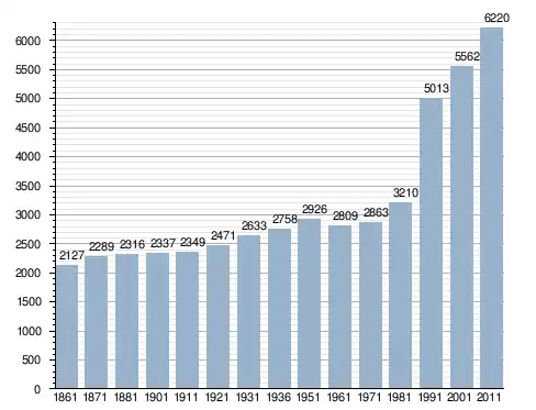 في سنة 1861 بلغ عدد السكان 2٬127 نسمة، وتطور العدد ليصل في سنة 2011 لـ 6٬220 نسمة.