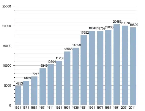 في سنة 1861 بلغ عدد السكان 4٬853 نسمة، وتطور العدد ليصل في سنة 2011 لـ 19٬620 نسمة.