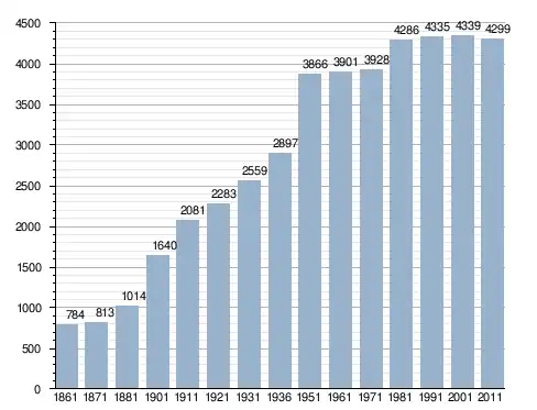 في سنة 1861 بلغ عدد السكان 784 نسمة، وتطور العدد ليصل في سنة 2011 لـ 4٬299 نسمة.