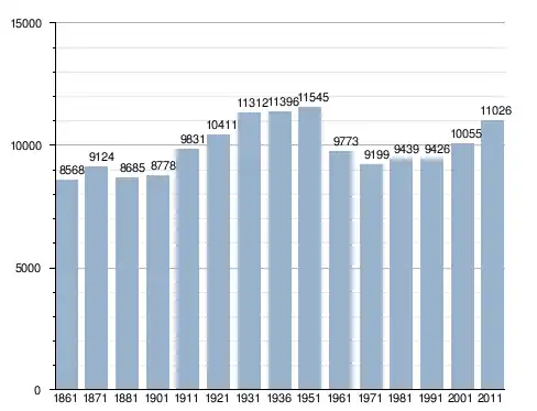في سنة 1861 بلغ عدد السكان 8٬568 نسمة، وتطور العدد ليصل في سنة 2011 لـ 11٬026 نسمة.