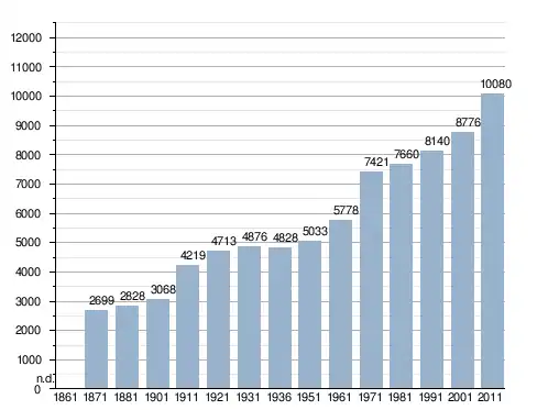 في سنة 1871 بلغ عدد السكان 2٬699 نسمة، وتطور العدد ليصل في سنة 2011 لـ 10٬080 نسمة.