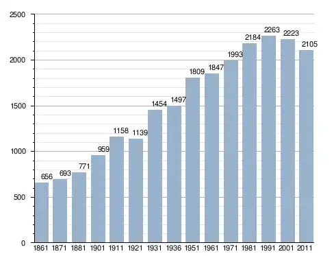 في سنة 1861 بلغ عدد السكان 656 نسمة، وتطور العدد ليصل في سنة 2011 لـ 2٬105 نسمة.