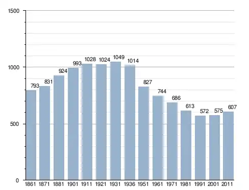 في سنة 1861 بلغ عدد السكان 793 نسمة، وتطور العدد ليصل في سنة 2011 لـ 607 نسمة.