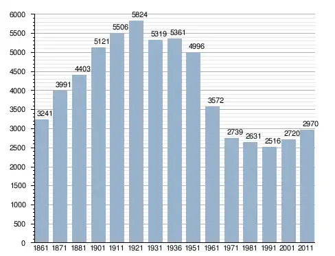 في سنة 1861 بلغ عدد السكان 3٬241 نسمة، وتطور العدد ليصل في سنة 2011 لـ 2٬970 نسمة.