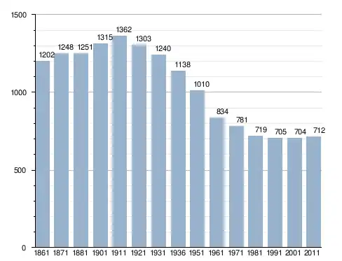 في سنة 1861 بلغ عدد السكان 1٬202 نسمة، وتطور العدد ليصل في سنة 2011 لـ 712 نسمة.
