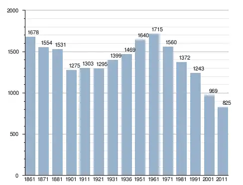 في سنة 1861 بلغ عدد السكان 1٬678 نسمة، وتطور العدد ليصل في سنة 2011 لـ 825 نسمة.