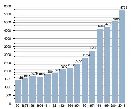 في سنة 1861 بلغ عدد السكان 1٬426 نسمة، وتطور العدد ليصل في سنة 2011 لـ 5٬738 نسمة.