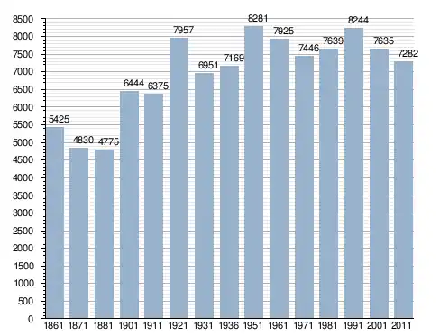 في سنة 1861 بلغ عدد السكان 5٬425 نسمة، وتطور العدد ليصل في سنة 2011 لـ 7٬282 نسمة.