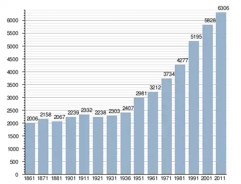 في سنة 1861 بلغ عدد السكان 2٬006 نسمة، وتطور العدد ليصل في سنة 2011 لـ 6٬306 نسمة.