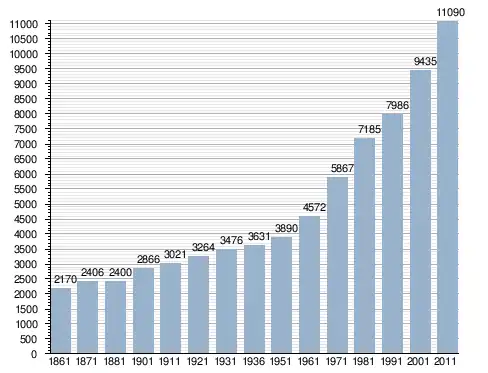 في سنة 1861 بلغ عدد السكان 2٬170 نسمة، وتطور العدد ليصل في سنة 2011 لـ 11٬090 نسمة.