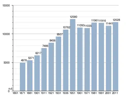 في سنة 1871 بلغ عدد السكان 4٬976 نسمة، وتطور العدد ليصل في سنة 2011 لـ 12٬028 نسمة.