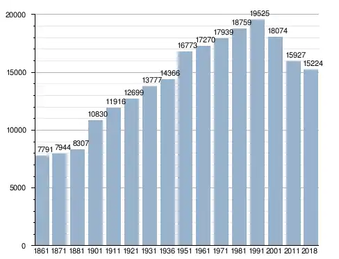 في سنة 1861 بلغ عدد السكان 7٬791 نسمة، وتطور العدد ليصل في سنة 2018 لـ 15٬224 نسمة.