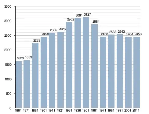 في سنة 1861 بلغ عدد السكان 1٬629 نسمة، وتطور العدد ليصل في سنة 2011 لـ 2٬453 نسمة.