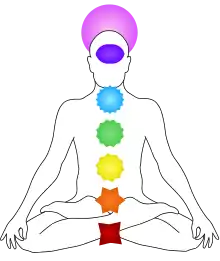 ساهاسرارا: شاكرا التاج | सहस्रार | "ألف بتلة" | التاج | 1000 | متعدد الألوان أو البنفسجي | تقع فوق تاج الرأس، ويمثلها اللون البنفسجي