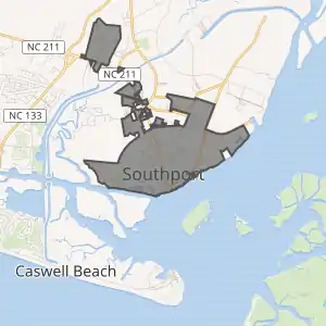 - "صفحة ساوثبورت (كارولاينا الشمالية) في خريطة الشارع المفتوحة". OpenStreetMap. اطلع عليه بتاريخ 6 مارس 2021. الوسيط