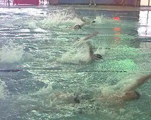 • حمَّام السِّباحَة : حوض كبير مُعدّ للسِّباحَة، - سباحة الصدر : طريقة سباحة يعتمد فيها السبّاح على الاستلقاء على وجهه، - سباحة حرّة : مسابقة سباحة، يختار فيها كلّ من المتنافسين طريقة السباحة التي يريدها.