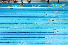 - السباحة الحرة أي ضربة إلا السباحة الخلفية، الصدرا، أو الفراشة. [2]