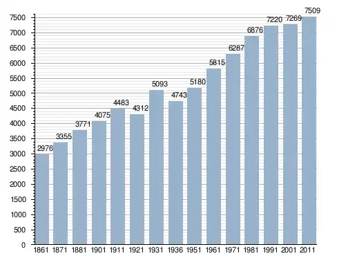 في سنة 1861 بلغ عدد السكان 2٬976 نسمة، وتطور العدد ليصل في سنة 2011 لـ 7٬509 نسمة.