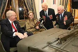 بمناسبة يوم المحاربين القدامى 2009 ، كرم السفير جون بيرل (على اليسار) قدامى المحاربين الروس في الحرب العالمية الثانية بحفل استقبال في سباسو هاوس ، والذي ظهر فيه سيارة جيب حقيقية من طراز 1943 Lend-Lease متوقفة في قاعة الاحتفالات