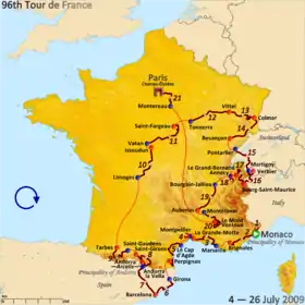 |CitationClass=تم تجاهله (مساعدة) - "معلومات عن سباق طواف فرنسا 2009 على موقع universalis.fr". universalis.fr. مؤرشف من الأصل في 25 يوليو 2019. الوسيط